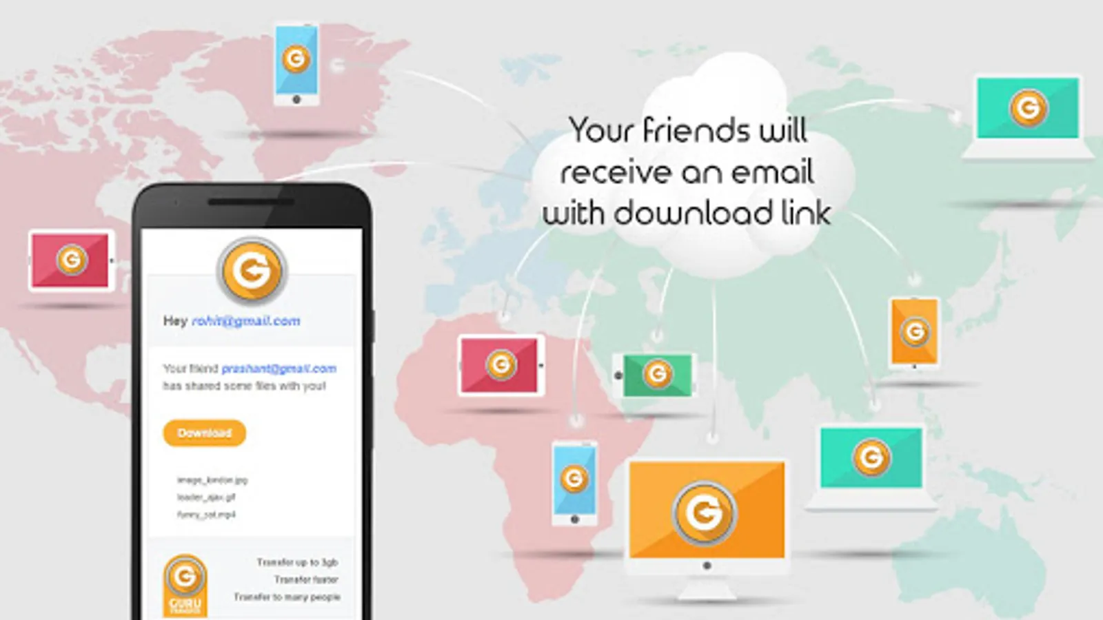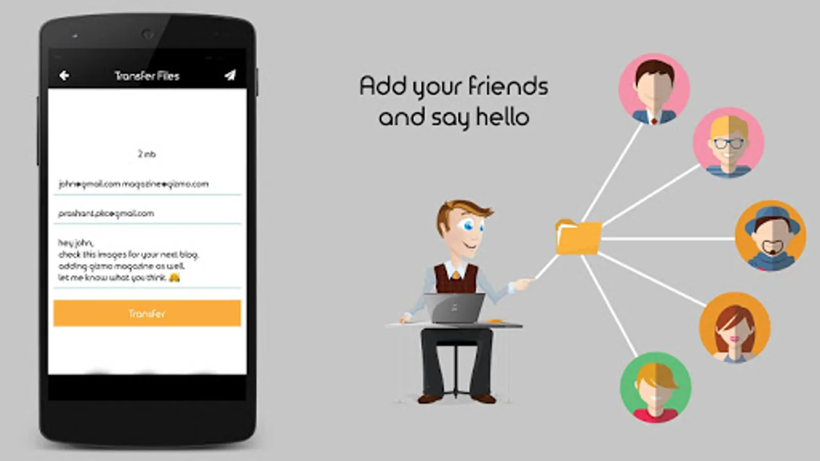 It’s India's First App to send Large files online to any email address It’s very easy to use. You can send images, files, Notes and more. Your friends do not need to have this app.