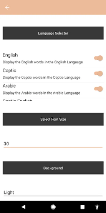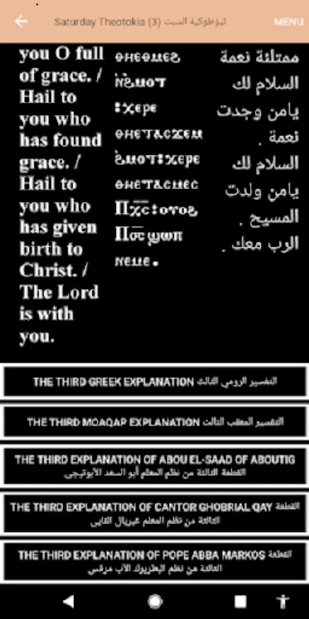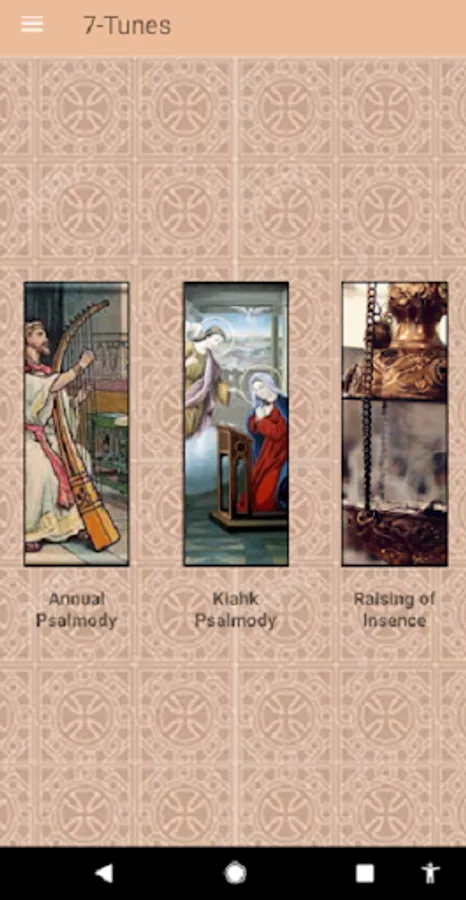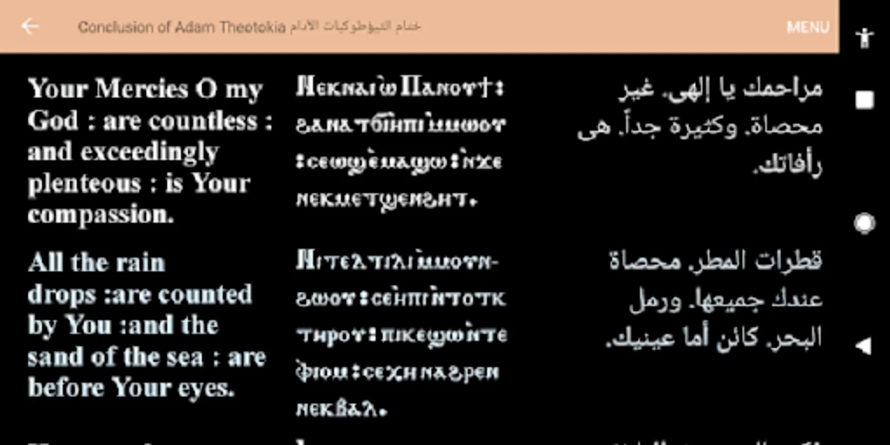 Praising is the work of the Heavenlies, and the Church is Heaven on Earth. Seven Tunes is a mobile application that includes some of the services that are used in the Coptic Church. It includes the Annual Psalmody, Kiahk Psalmody and the Raising of Incense. This application has those prayers laid out in a beautiful and simple scroll view that is wrapped in carousel like view. The user scrolls through the content of each hymn and swipes left or right to navigate to the next hymn in the service. The most important feature of Seven Tunes is the ability to display the Coptic parts of the hymn in either Arabic or English. This allows for the people who are not strong in the Coptic language to participate and to chant with the congregation. The application’s default languages are Arabic, Coptic and English, but the user has the option in the settings to change the languages and the number of languages to be viewed. We pray that God may bless this work to grow thirty, sixty and hundred-fold and that we add more services that are prayed throughout the year in the near future.
