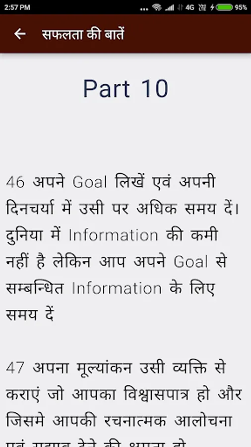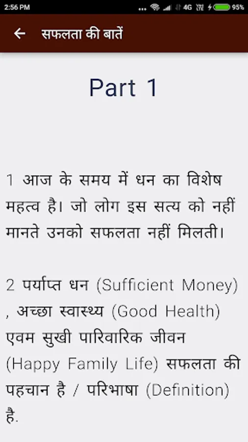 इस App में आप को सफल होने के Practical Tips बताये गए है। साथ ही साथ सफलता की परिभाषा दी गई है जो कि App को समझने में बहुत उपयोगी है .