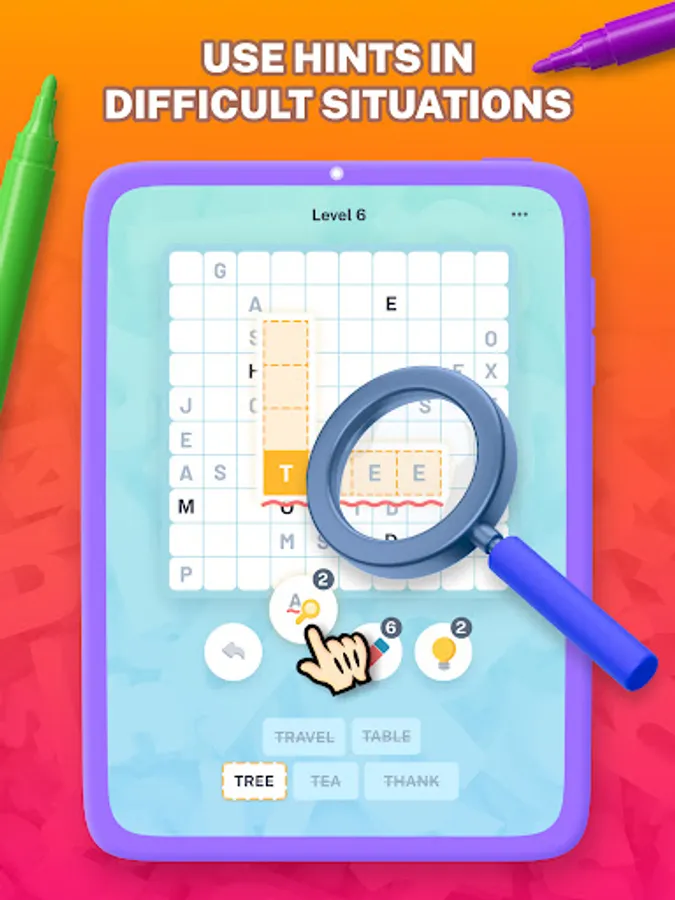 ⚡Each word puzzle is accompanied by a hint to facilitate fun word searches