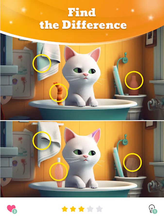 The Find 5 Differences game will take you to the land of endless fun 😀 Compare cool & fun pics to spot hidden object inside photo puzzles. Play our exciting photo hunt game and master investigation skills like a true detective 🔍