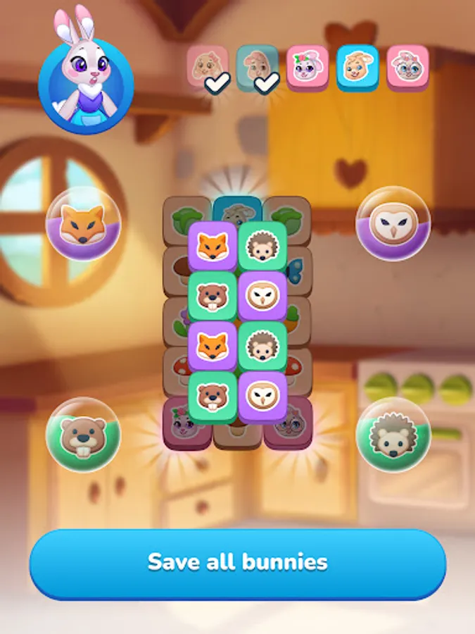 Rabbit Tiles mahjong puzzle game is an exciting Triple matching game with great graphics that develops attention, trains the brain and helps pass the time. 🧩Solve the tasks, find all the puzzles you need, and learn the exciting story of the rabbit family.