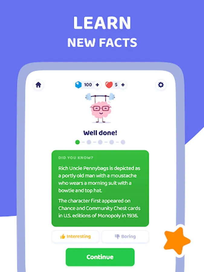 Brain Blitz Trivia provides smooth and exciting gameplay suitable for players of all ages and skill levels. Expand your knowledge, challenge your intellect, and engage in friendly competition by completing levels and earning stars.