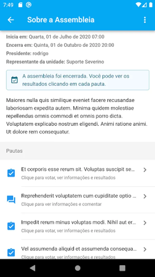 Vote in polls created by the liquidator and that will guide the votes of meetings.