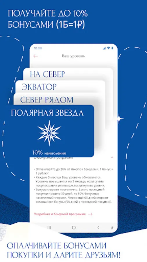 — Loyalty program "Northern way". Get 50% bonuses after your first order and up to 10% bonuses on subsequent purchases. More purchases - more bonuses! (1B=1₽)