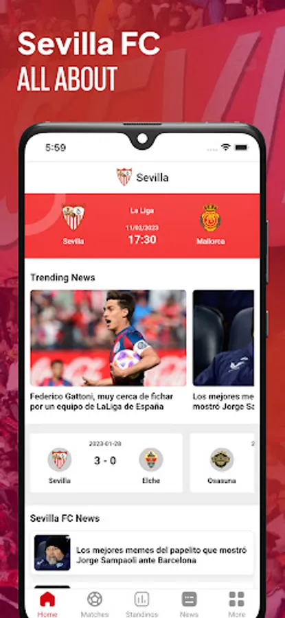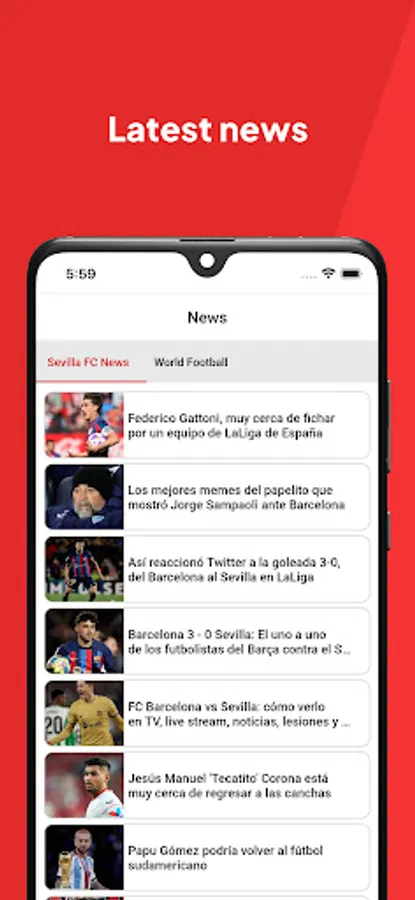 Sevilla news is just a click away. Be the first to read Seville news. Sevilla transfer news instantly in your pocket!