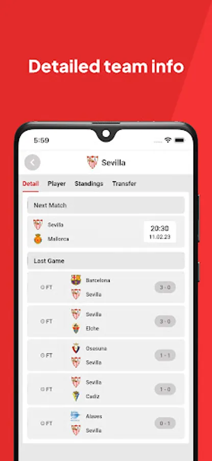 Sevilla Fans, with instant updated data, access all Sevilla matches and statistics with instant data.