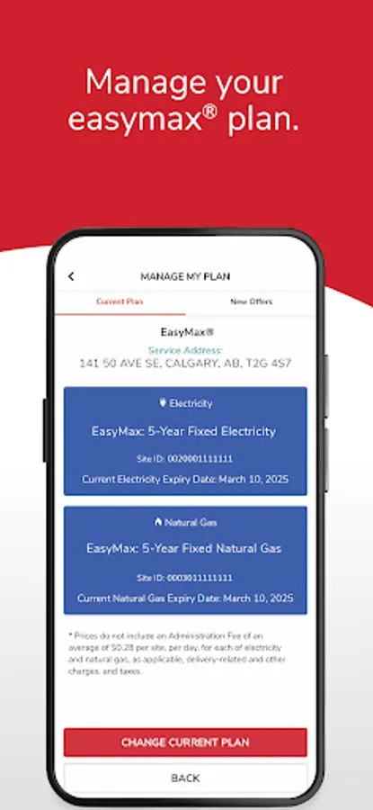 The ENMAX Energy app offers a convenient way to manage your easymax® account, including switching your rate(s), renewing your plan, or scheduling a move.
