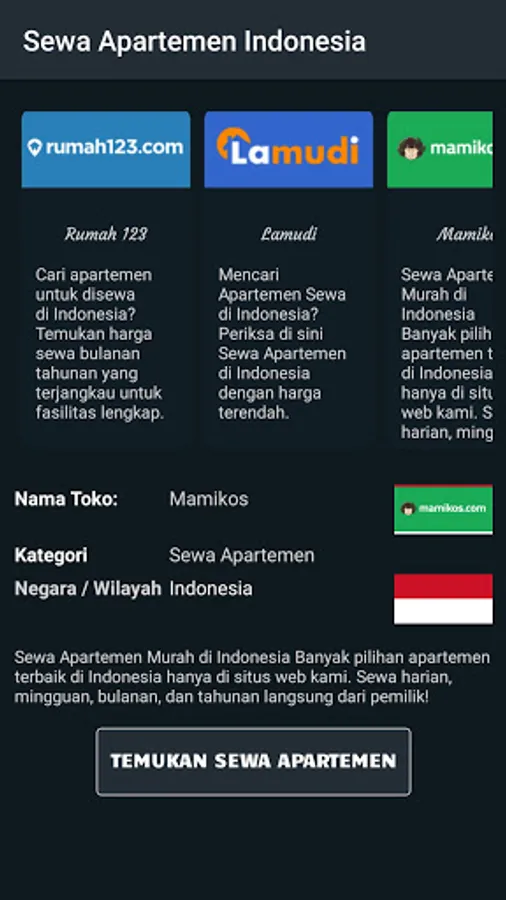 Looking for a house, apartment or other property? You can find apartment rentals in Indonesia. We have listed many well-known websites where you can easily find rental apartments. You can browse thousands of apartment rental ads on this website.