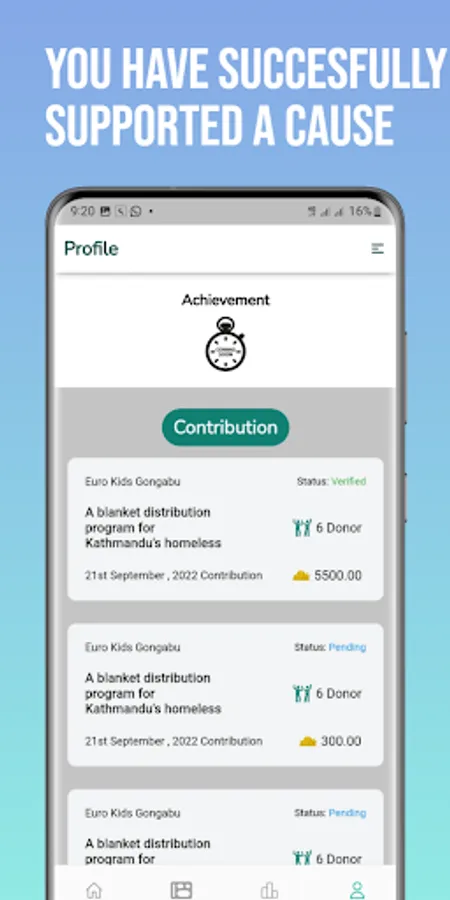 Be a philanthropist today. How? Install the Sewa Ko Yatra app. Sign Up. Find the cause you want to support. Look for the business /promoters that donates to your preferred cause. Purchase something from that promoter. Request a bill, then upload it using Sewa Ko Yatra. Congratulations! You've successfully contributed without spending more money than you would have. Ta da!