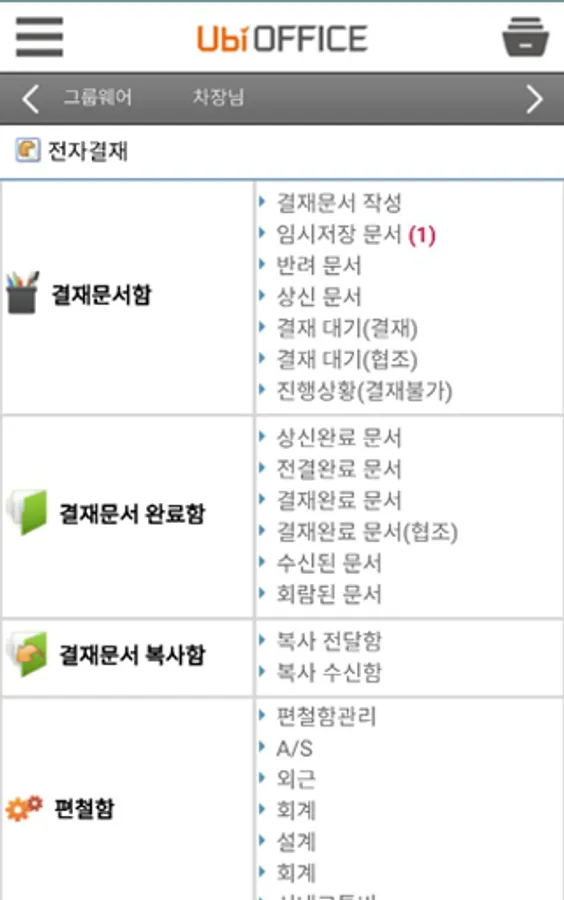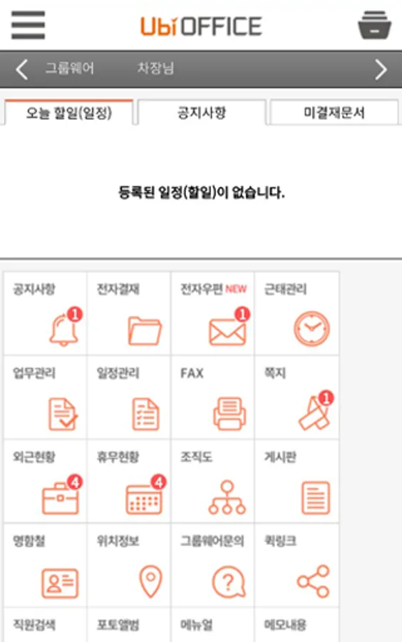 - EMail, e-mail, electronic approval, notice, time and attendance, business journal, emergency contact, weather, FAX, photo album, etc.