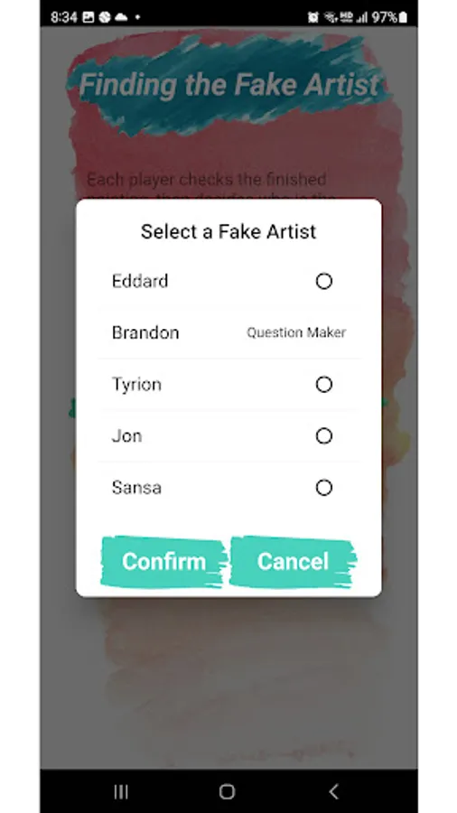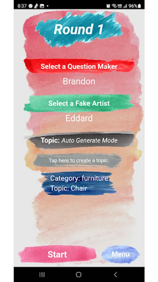 - Random selection function for question maker and fake artist