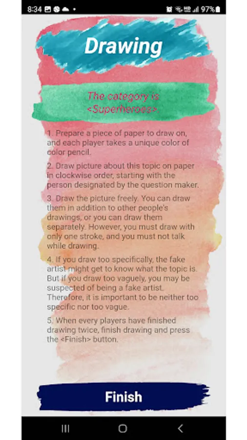 This app is an app to assist the board game 'Fake Artist goes to New York', and the following functions are provided.