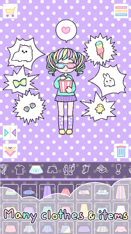 4. Decorate your cute girl using lots of clothes, items, speech bubbles and letters.