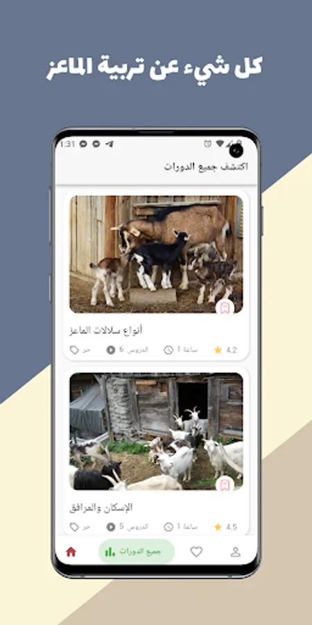 تجربة تعليمية شاملة وتفاعلية تنقلك خطوة بخطوة إلى عالم تربية الماعز المثمرة. احصل على تطبيق تعليمي لتربية الماعز على المزرعة باللغة العربية واستعد لتحقيق النجاح في هذا المجال المثير.