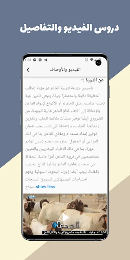 سوف تستفيد من دروس مفصلة وصور وفيديوهات توضيحية للتعرف على أنواع الماعز المختلفة، والعناية اللازمة بالماعز من الولادة حتى النمو، وتوفير الغذاء والمأوى المناسبين لهم. ستتعلم أيضًا كيفية تشخيص الأمراض الشائعة وتطبيق إجراءات الوقاية اللازمة للحفاظ على صحة الماعز.