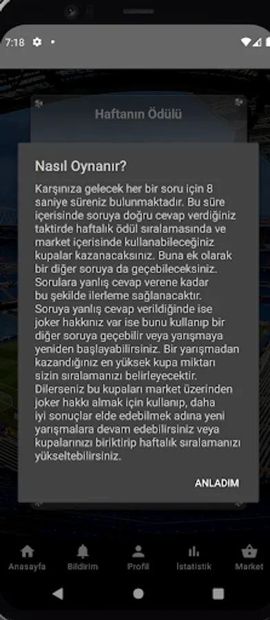 It is a quiz application where the questions are from the football category and the first 3 people are awarded every Sunday according to the weekly rankings. The awards of the week have been announced. Download the app to collect the rewards, collect the most trophies and start winning.