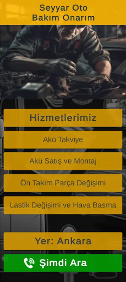 With the Mobile Auto Maintenance and Repair application, you can contact us when you have any problems with your vehicle. We provide Battery Reinforcement, Battery Sales and Installation, Front Set Parts Replacement, Tire Change and Air Inflation services. When you click the contact button on the application, it directs you to call us. When you tell us where you are and your problem, we will come to the location you sent us and fix your problems.