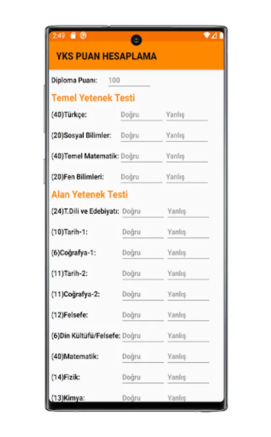You can see the questions of TYT, AYT, DGS, MSU, KPSS, YDS, ALES, TUS, DUS exams and calculate your scores.