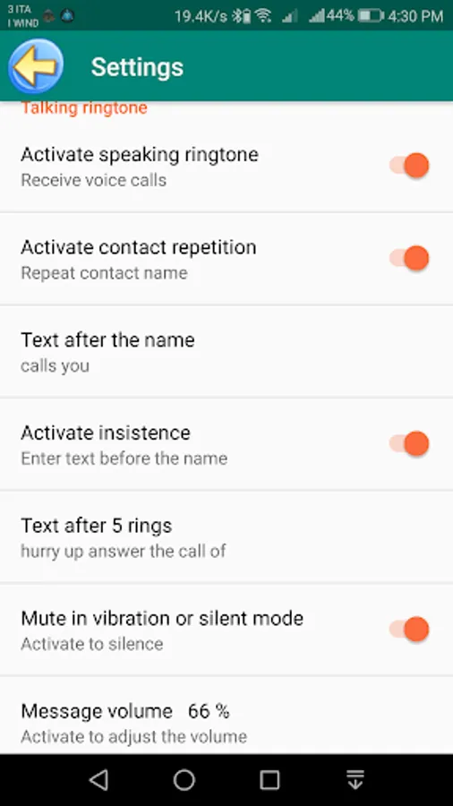 With this app you can listen to the name of the contact that calls you, you can modify the message to listen to before the name and even after the name.