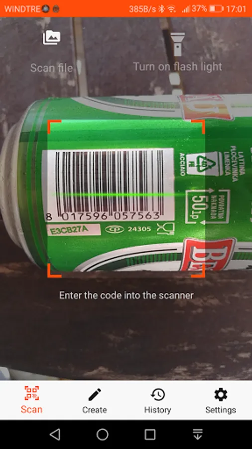 - You can turn on the flashlight to scan QR codes / barcodes in the dark.