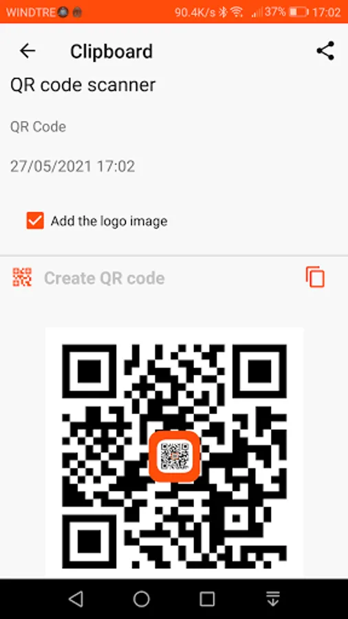 - Other options: Create QR, Scan Image, Scan from Gallery, Share contact details via QR.