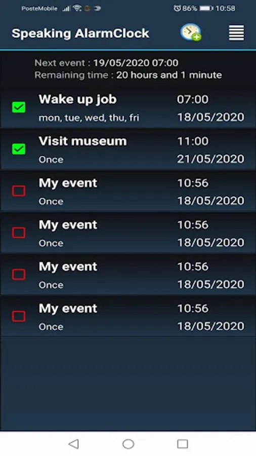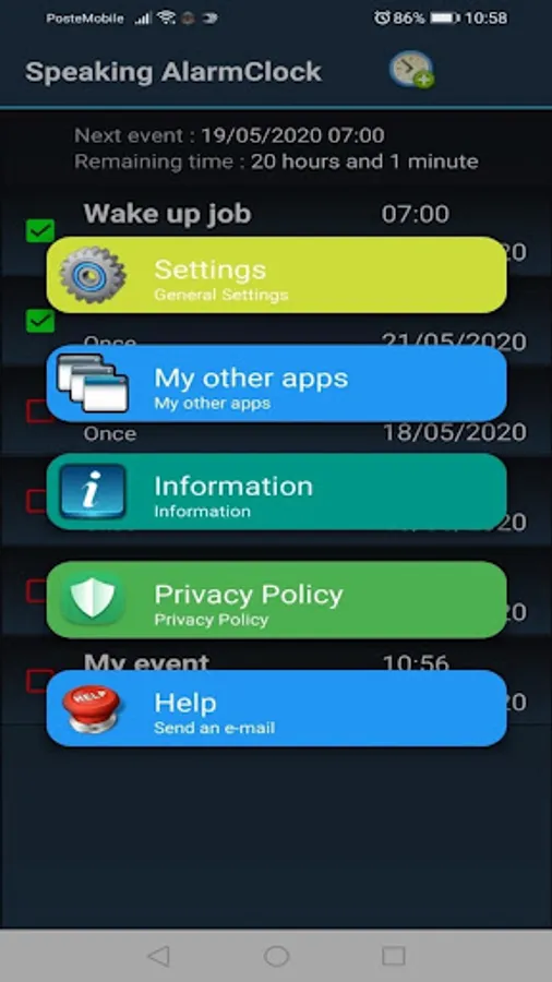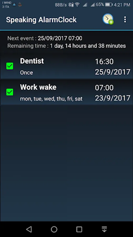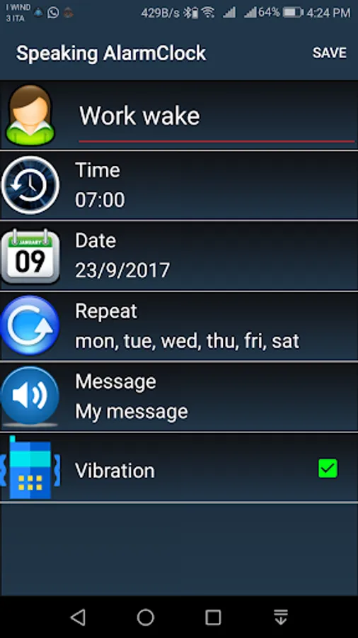 With this app you will have an alarm clock that speaks and says the phrase you want to be woken up with, or you will have a talking alarm clock that reminds you of a long-term appointment with a voice message!!