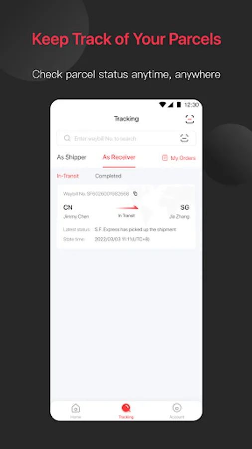 SF Express Intl. is a multi-functional App that supports shipping parcels, tracking parcels and managing orders in countries/regions other than Greater China(Chinese Mainland, Hong Kong/Macao/Taiwan China).