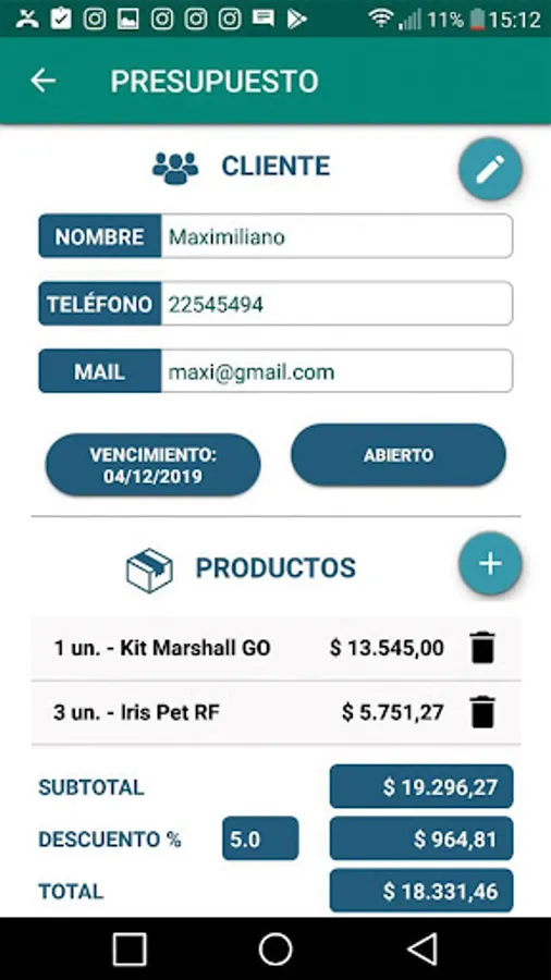 It was designed to facilitate the possibility of making digital budgets in a professional way, with a commercial description of the products, with your logo and then be able to send them by mail or whatsapp to your client. In addition you will be able to track those budgets not yet closed so that you do not lose any sales.