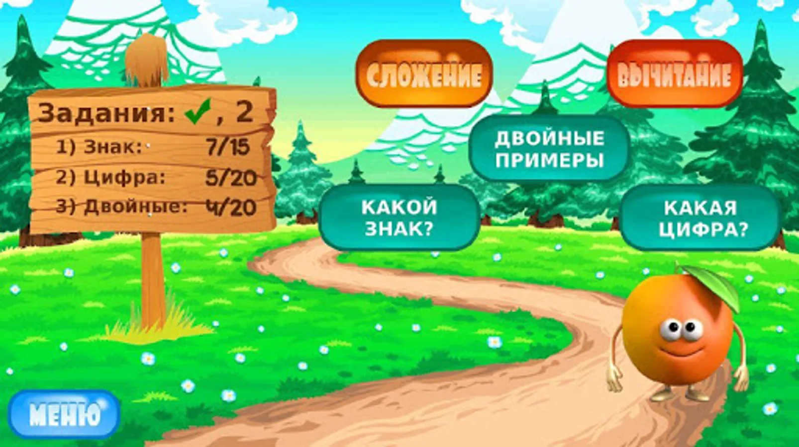 An interesting free math game in which we learn to count and solve examples of addition and subtraction, and the talking orange - Matelsinka helps us in this, which also rewards you with a certificate for passing the exam.