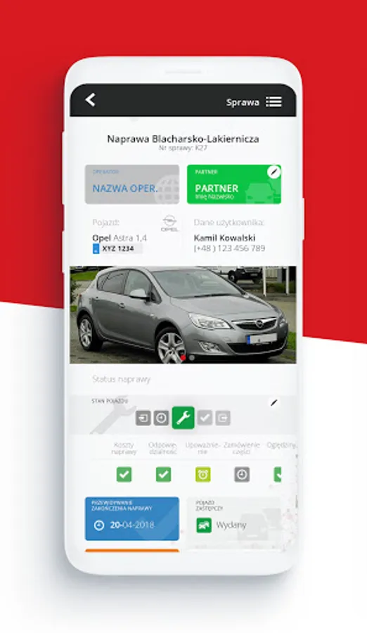 The ServiceFlow BOK application is the mobile executive of ServiceFlow. The version for the service office provides support for service advisers, enabling the handling of photos and documentation, searching and previewing the status of the order, editing the expected date of repair completion. The version for the workshop ensures the registration of working time, repair stages, final inspection after the repair is completed.