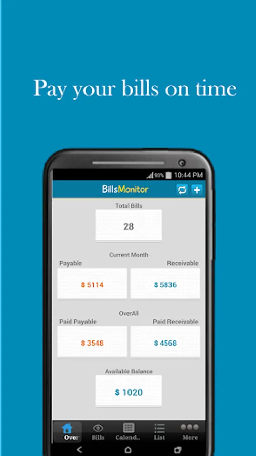 This is bills app that is to handle your payment and deposit amounts and make you sure pay your bills on time.