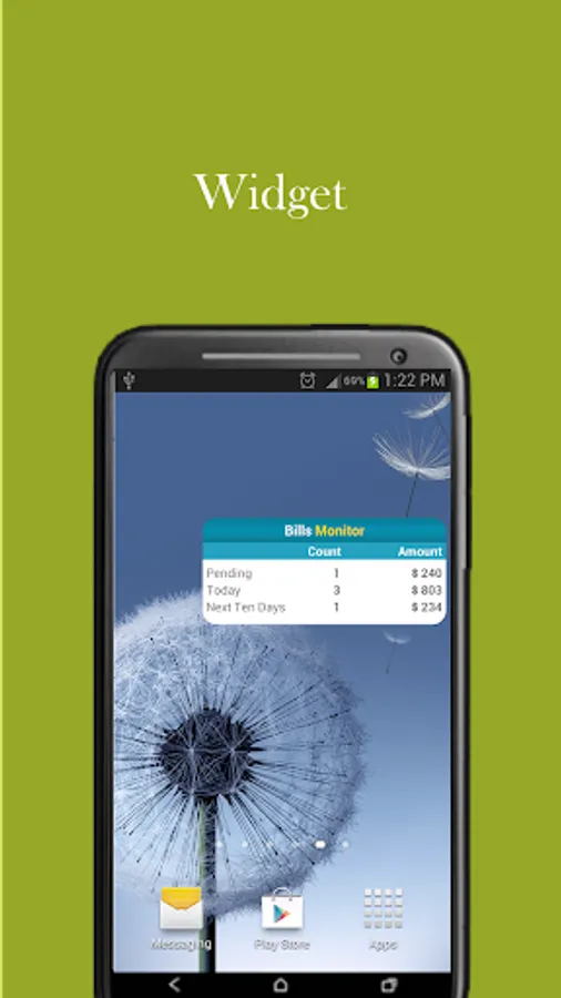 - Widget showing count and amount of Overdue, Today, Next 10 days Bills
