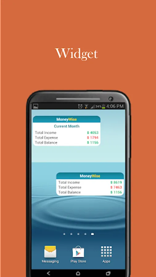 - 3 Widgets : Summary Widget, Monthly Widget, Quick Add