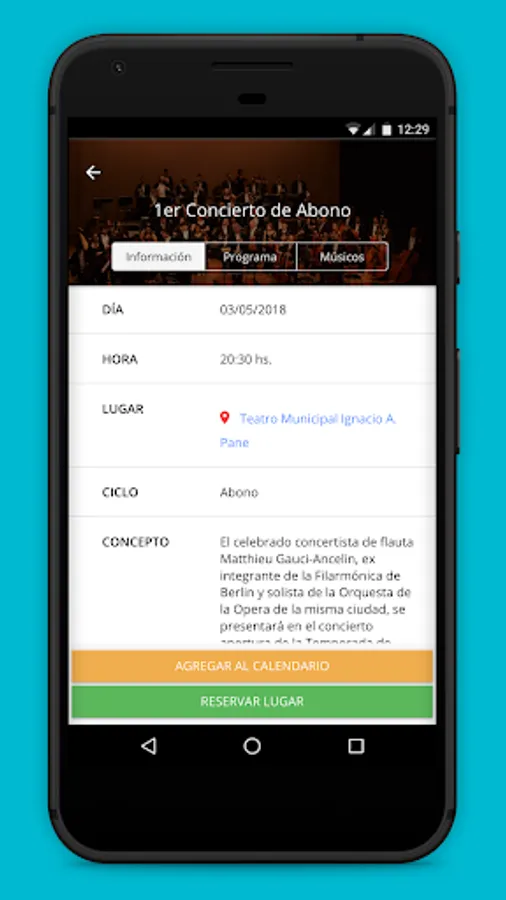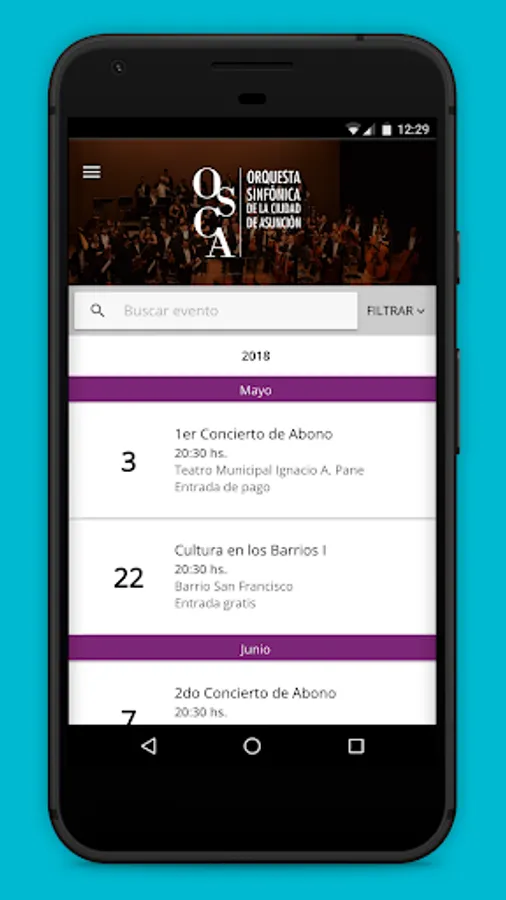 App of OSCA's main objective is to provide detailed and updated information on the performances of the orchestra, as well as history, members of the orchestra, schedule of events, among others.