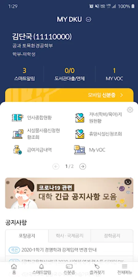 This Dankook University app is an official app that serves members of the school at the Information Planning Center, and you can use the service after logging in.