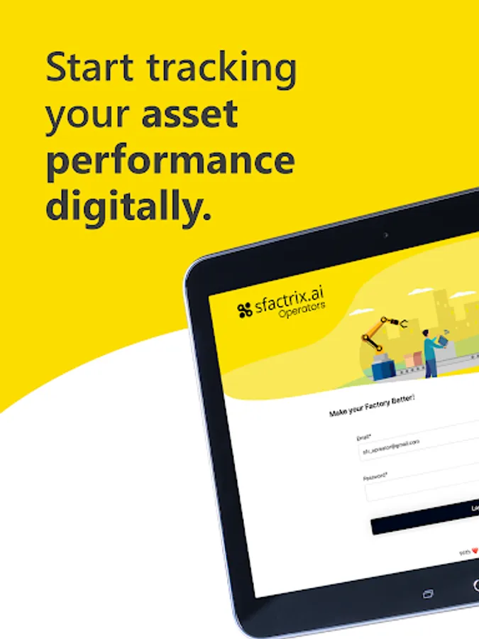 - SFactrix Operator mobile app can be accessible only by the operator of SFactrix.ai tenant account. No other user will have rights to access the SFactrix Operator application. Other users can access SFactrix through web app hosted at https://app.sFactrix.ai