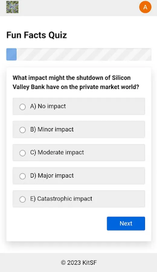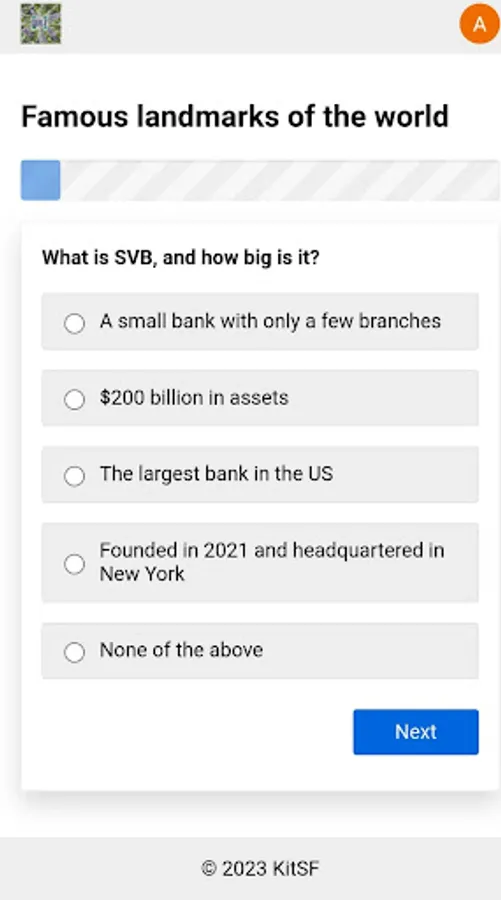 "Silicon Valley Bank Crisis Quizzes" is a mobile app that tests your knowledge about the recent crisis faced by the Silicon Valley Bank. Get updated on the latest news and information about the bank's downfall, while testing your understanding of the situation through a series of 15 multiple-choice questions. With each question presenting five possible answers, this app will challenge your knowledge and keep you engaged. Download "Silicon Valley Bank Crisis Quizzes" on Google Play today and see how well you know about this recent crisis.