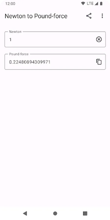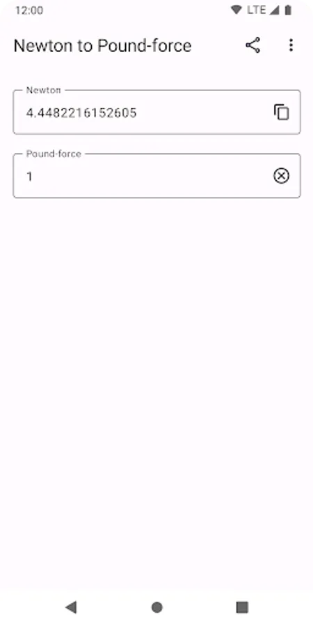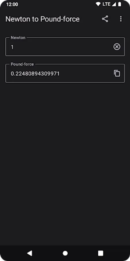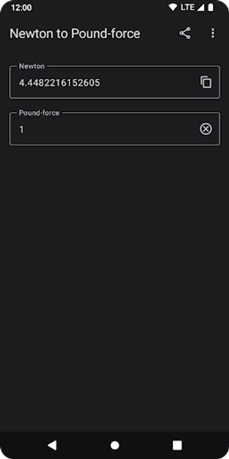 Newton to Pound-force (N to lbf) will convert and display the newton (N) value instantly while you typing the pound-force (lbf) value.