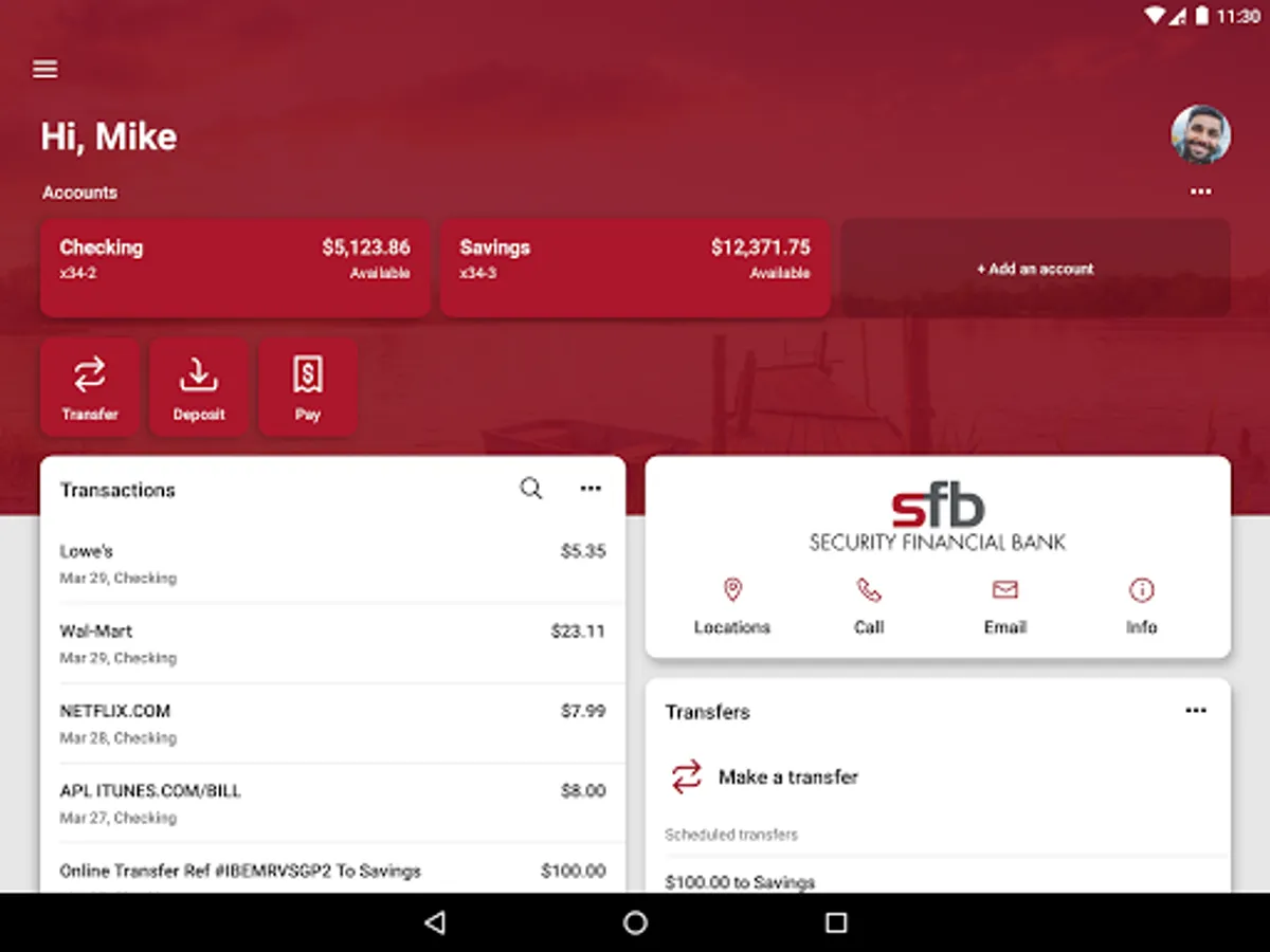 To use the sfb Mobile App, you must be enrolled as an Security Financial Bank Internet Banking user. If you currently use our Internet Banking, simply download the app, launch it, and login with the same Internet Banking credentials. After you successfully login to the app, your accounts and transactions will begin updating.