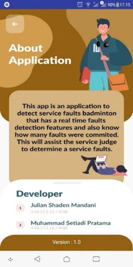 This app is an application to detect service faults badminton that has a real time faults detection features and also know how many faults were commited. This will assist the service judge to determine a service faults.