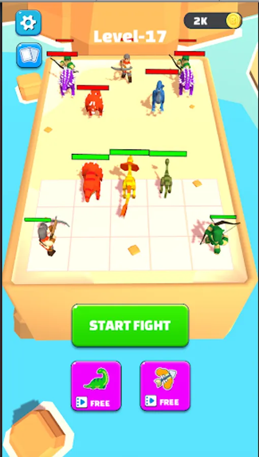 Your mission is simple - use your strategy to combine the dinosaurs on the battlefield to fight against the enemies. The enemies are dragons, monsters, or other dinosaurs. The higher the level of the monster, the stronger the attack and defense. The most important skill to win is master in placing reasonable dinosaurs with different attributes, reacting and making decisions quickly. Use your strategy and tactics to win the battle and move to the next level.