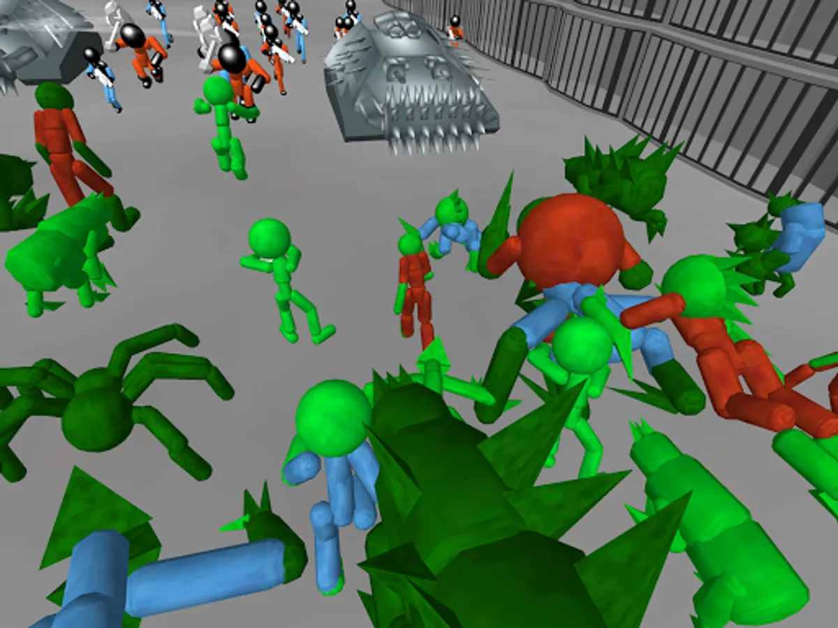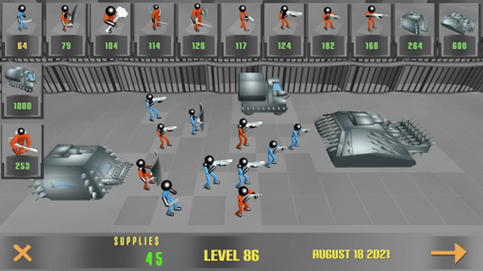 - Stickmen have melee weapons, gun, ak-47, shotgun, tank and armored vehicle