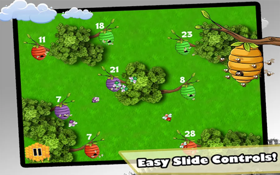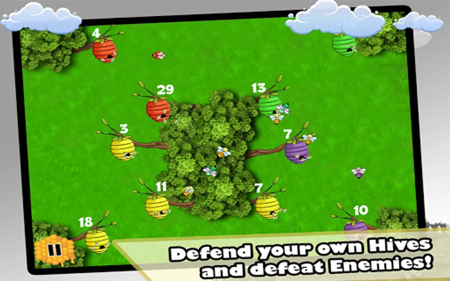While it starts with easy tasks by capturing one empty beehive and capturing one enemy beehive, as the levels go up, task becomes harder with number of empty and enemy beehives going up too. As the number of beehives to be captured goes up, you have to keep a sharp eye and respond quickly as your enemy beehives too try to capture the empty beehives as well as your beehives.