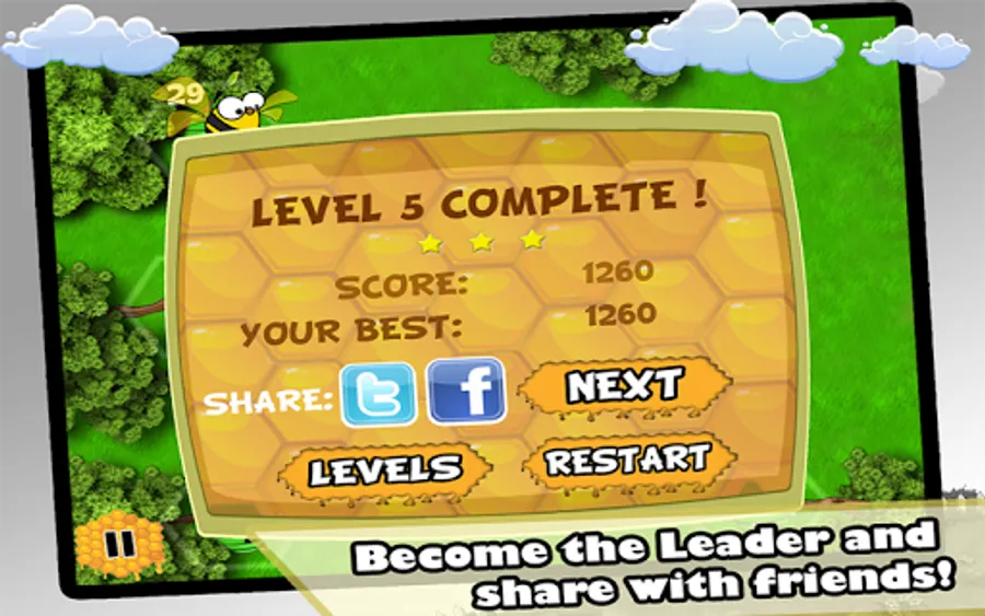 You can also send bees from more than one of your beehives to a target beehive. Simply select more than one of your beehives by putting your finger on one green beehive and immediately sliding your finger to another green and then send the bees to the target beehive from both the sources. You have to capture all beehives in order to complete a level.
