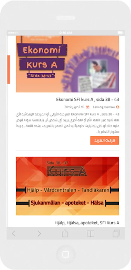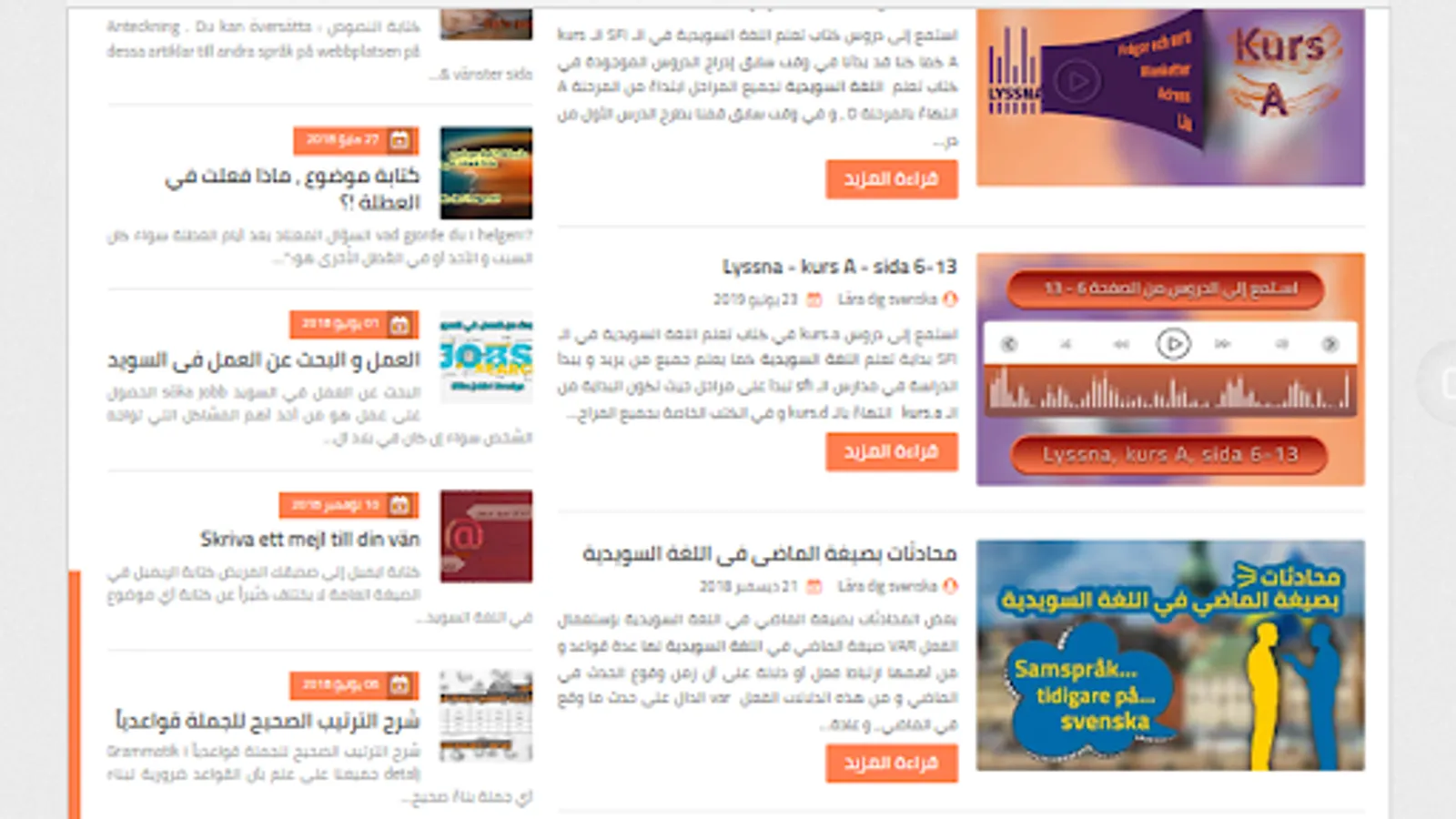 This application contains all the lessons of the first and primary stage of learning the Swedish language that are approved in all SFI schools in Sweden.