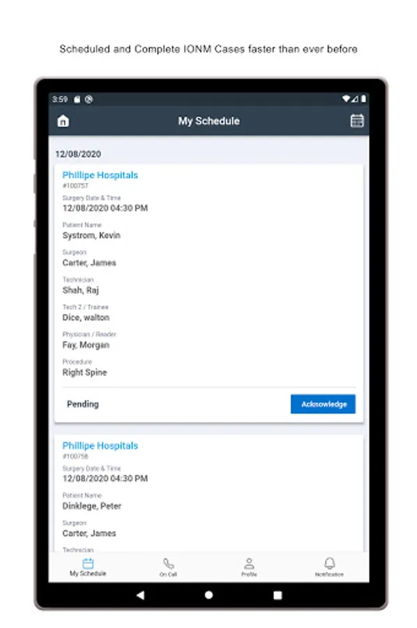 ZinniaX IONM offers a comprehensive management system with a full slate of features that take users through the entire IONM lifecycle. From scheduling, surgery, billing to closing, users can track anything from our organized, feature-rich dashboard. Billing, invoicing, alerts, analytics reports, role-based dashboards, chat on cases, create new cases, and much more.