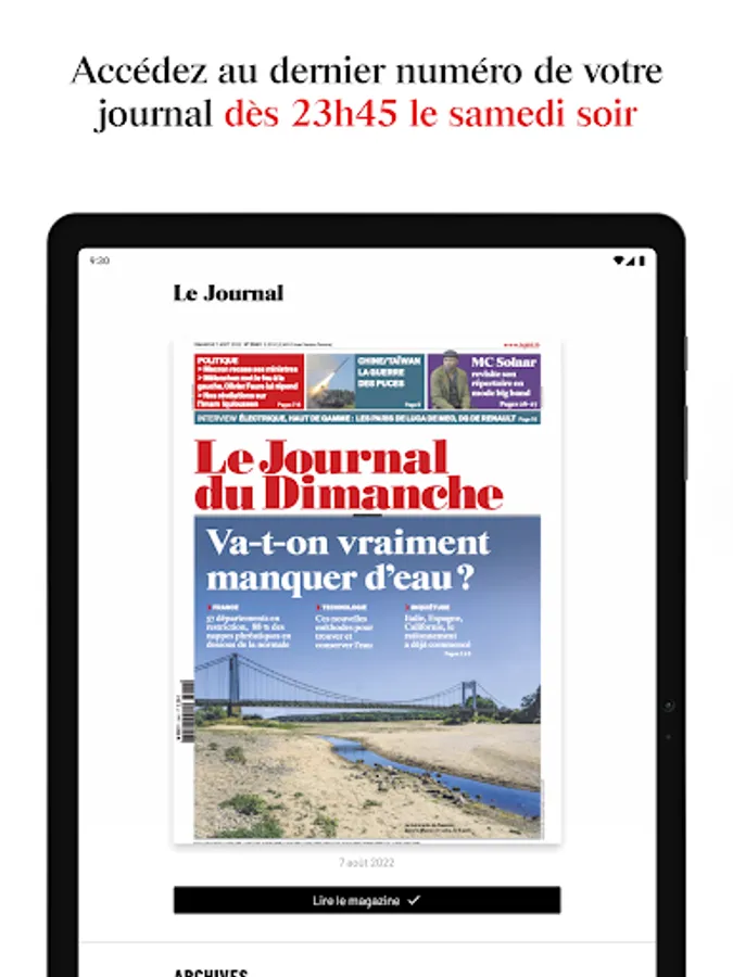 - Your editions in digital version: do not wait any longer for Sunday and access the latest issue of your newspaper in digital version on Saturday from 11:45 p.m., as well as Version Femina and JDD Magazine. Enjoy the double-page experience on your tablet.