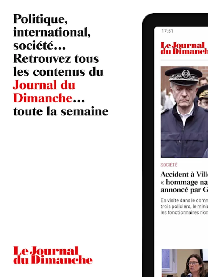 Find the main sections of the newspaper on your mobile or tablet: politics, international, society, economy, sport, culture... The JDD shares with you its revelations, its exclusive interviews, its surveys, its polls, its analyzes, its forums ... to understand everything about the subjects that make and will make the news.