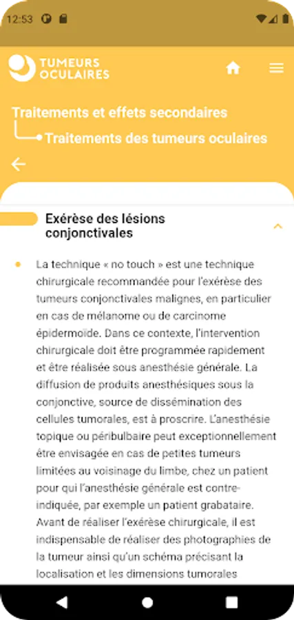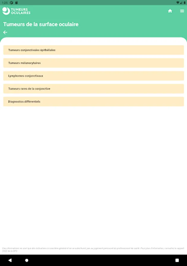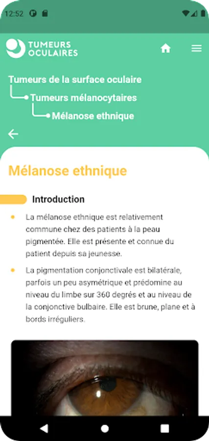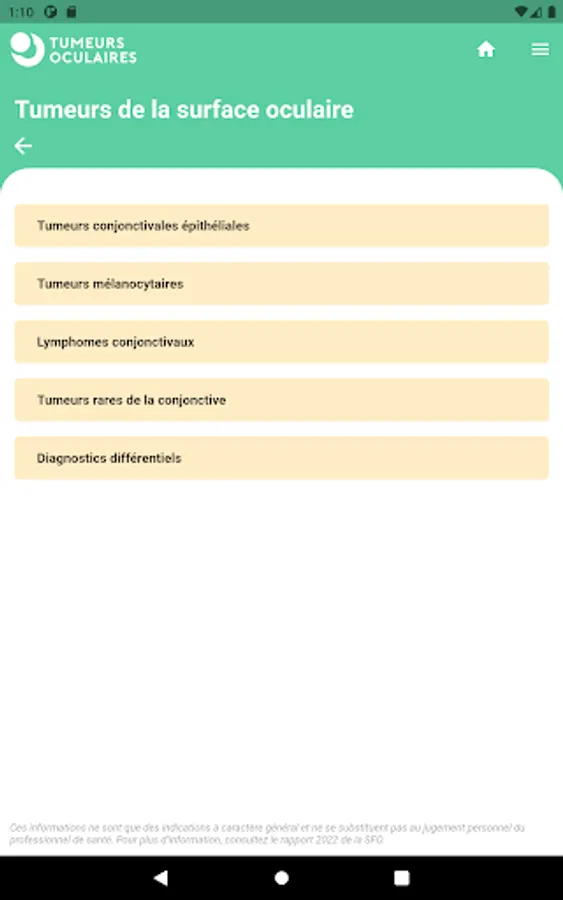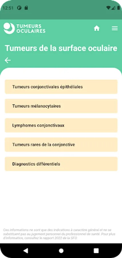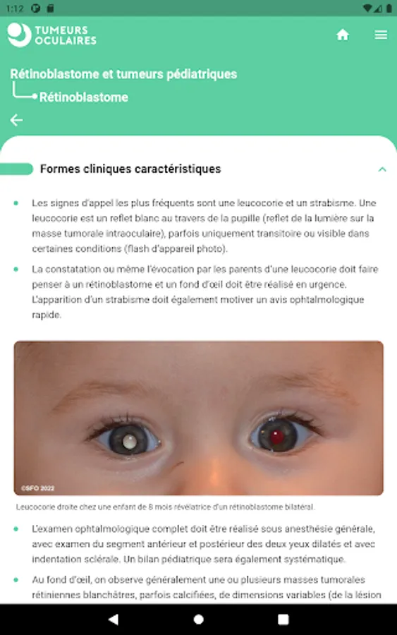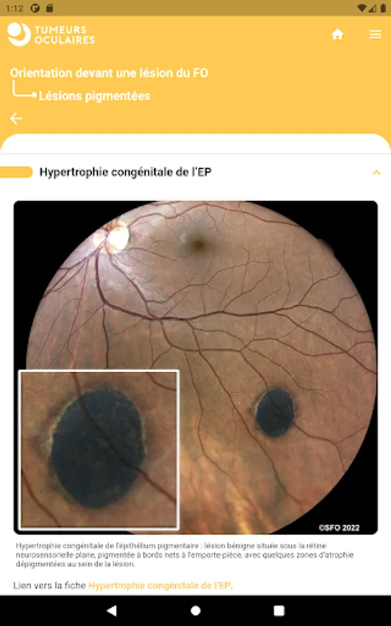 Produced by the authors of the 2022 report of the French Society of Ophthalmology (SFO) on ocular tumors, this application is made available free of charge to members of the SFO.